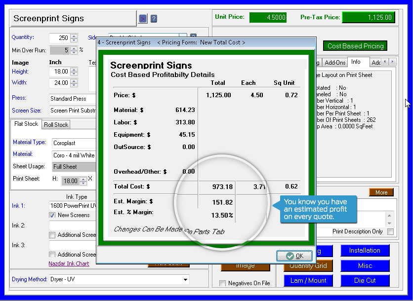 Stop worrying. You'll see your estimated margin on every quote you send.